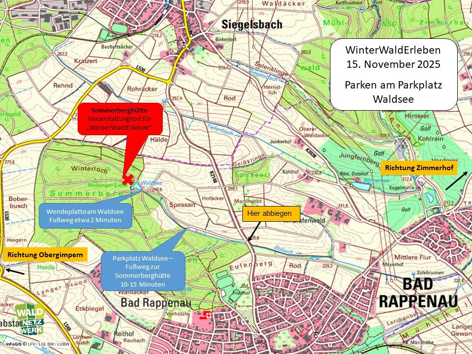 Oder am Parkplatz beim Waldsee … von dort aus sind es ca. 15 Minuten zu Fuß (Der Weg ist ebenfalls ausgeschildert!) -> Hier geht´s zur Karte!
