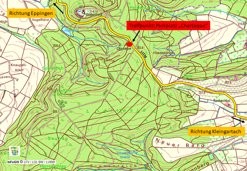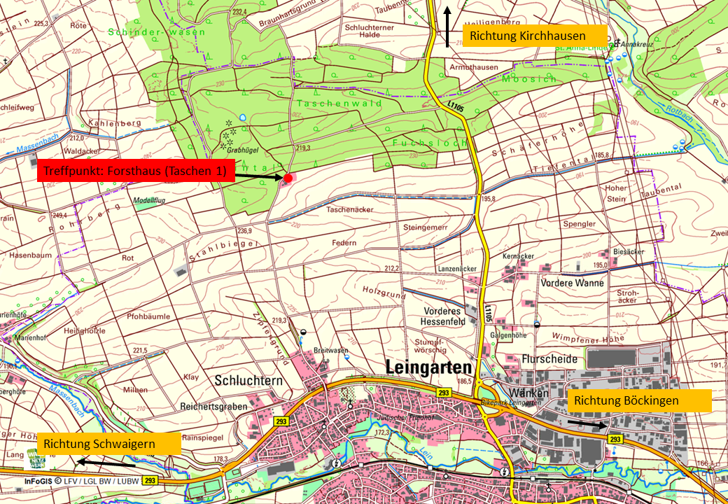 Wo? Leingarten, Treffpunkt: Forsthaus (Taschen 1) –> Hier geht´s zur Treffpunktkarte!
