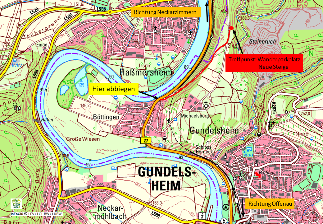 Wo? Gundelsheim-Böttingen, Wanderparkplatz Neue Steige –> Hier geht´s zur Treffpunktkarte!