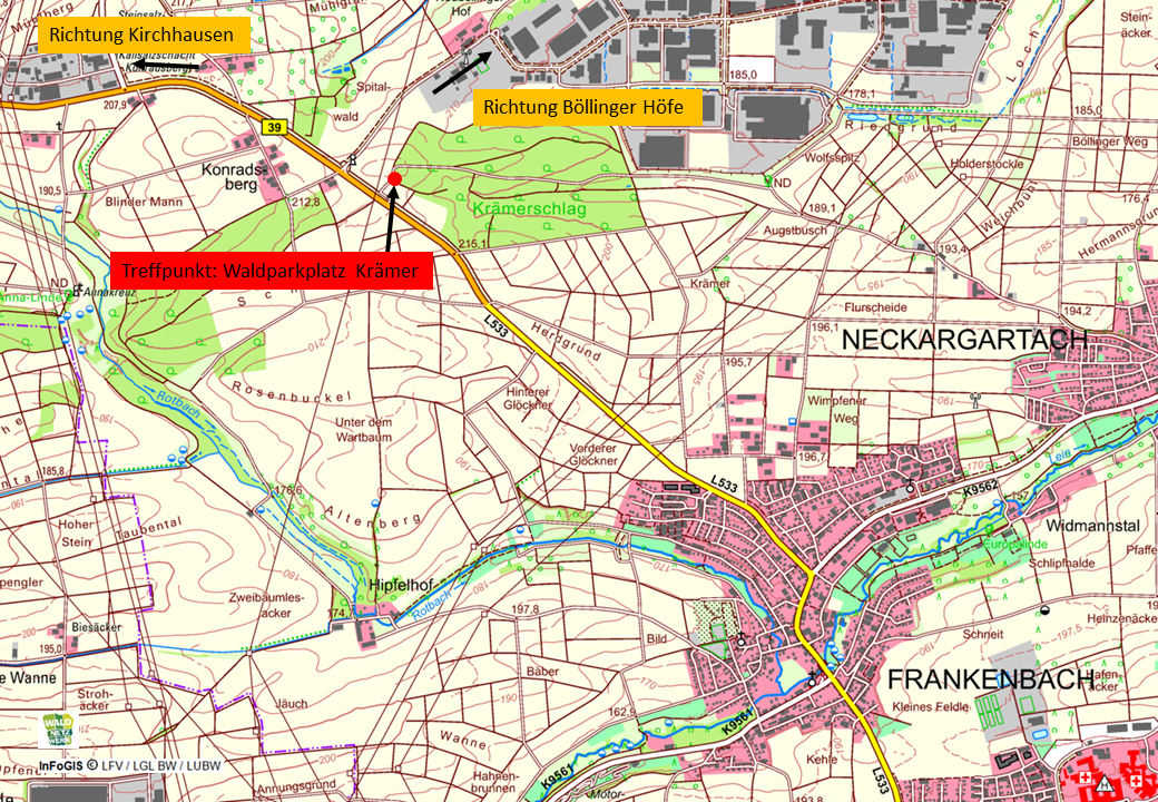 Wo? Heilbronn, Waldparkplatz Krämer an der B39 zwischen Frankenbach und Abzweigung Böllinger Höfe –> Hier geht´s zur Treffpunktkarte!