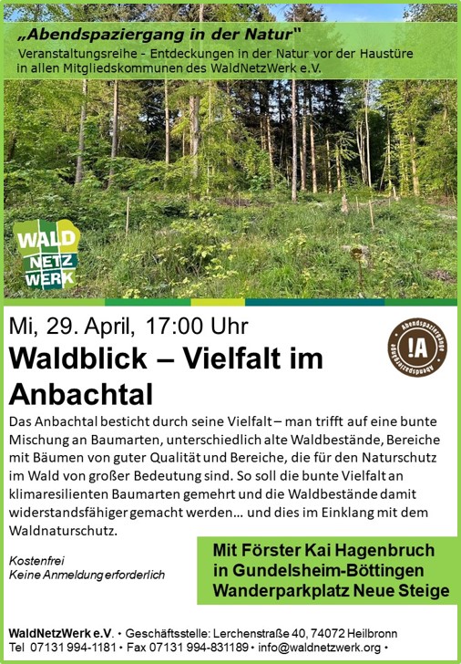 Entdecke die bunte Vielfalt im Anbachtal! Förster Kai Hagenbruch zeigt beim Abendspaziergang, wie unterschiedliche Baumarten, alte und junge Bestände sowie wertvolle Naturschutzbereiche gemeinsam einen robusten, zukunftsfähigen Wald formen. Ziel: Mehr klimaresiliente Arten, mehr Stabilität – im Einklang mit dem Waldnaturschutz.