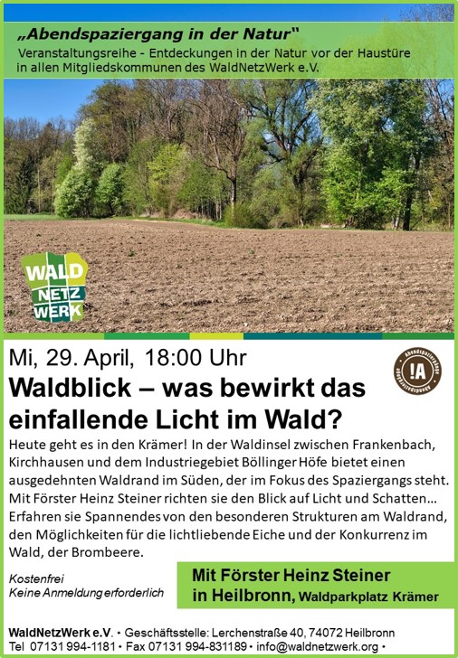 Licht, Wärme, Leben: Entdecke, wie Sonnenlicht den Wald formt! ☀️ Zusammen mit Förster Heinz Steiner schauen wir im Krämer auf Waldrand – dort, wo Besonnung, Erwärmung und Verdunstung die Entwicklung prägen. Erfahre, warum die lichtliebende Eiche davon profitiert, welche besonderen Strukturen am Waldrand entstehen und wie die Brombeere als Konkurrent mitmischt. Ein lehrreicher Abend für Alle.
