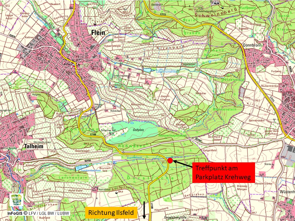 Treffpunkt ist in Ilsfeld am Parkplatz Krehweg (Ilsfeld in Richtung Flein rechts). Hier geht´s zur Treffpunktkarte!
